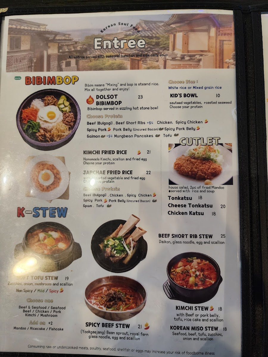 Chicken cutlet, 2pc friend mandoo, house salad served with soup
